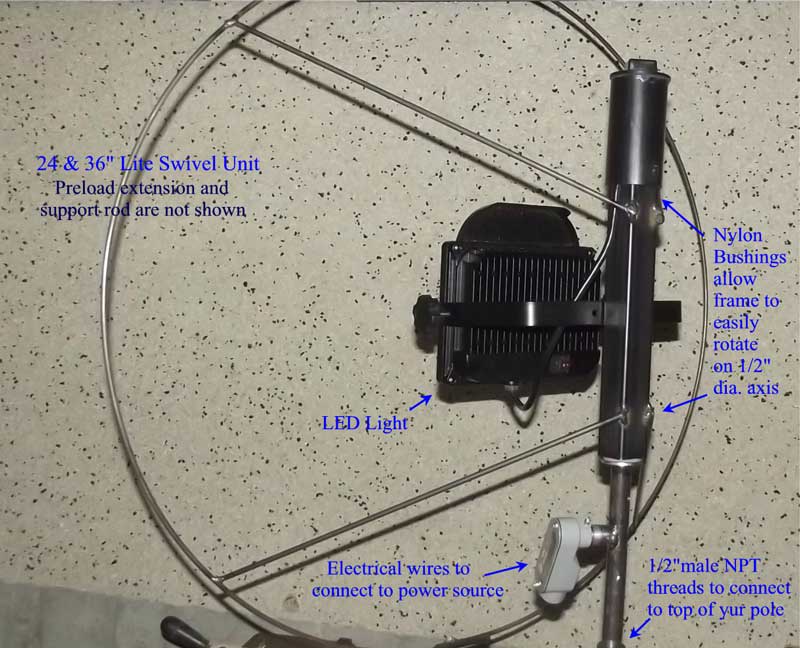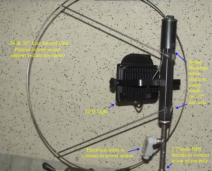 - Screw swivel’s ½” MNPT thread into the pole’s female NPT fitting.