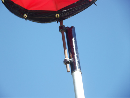 View of the hoop mounted in the base at the top of a 1″ dia. pipe