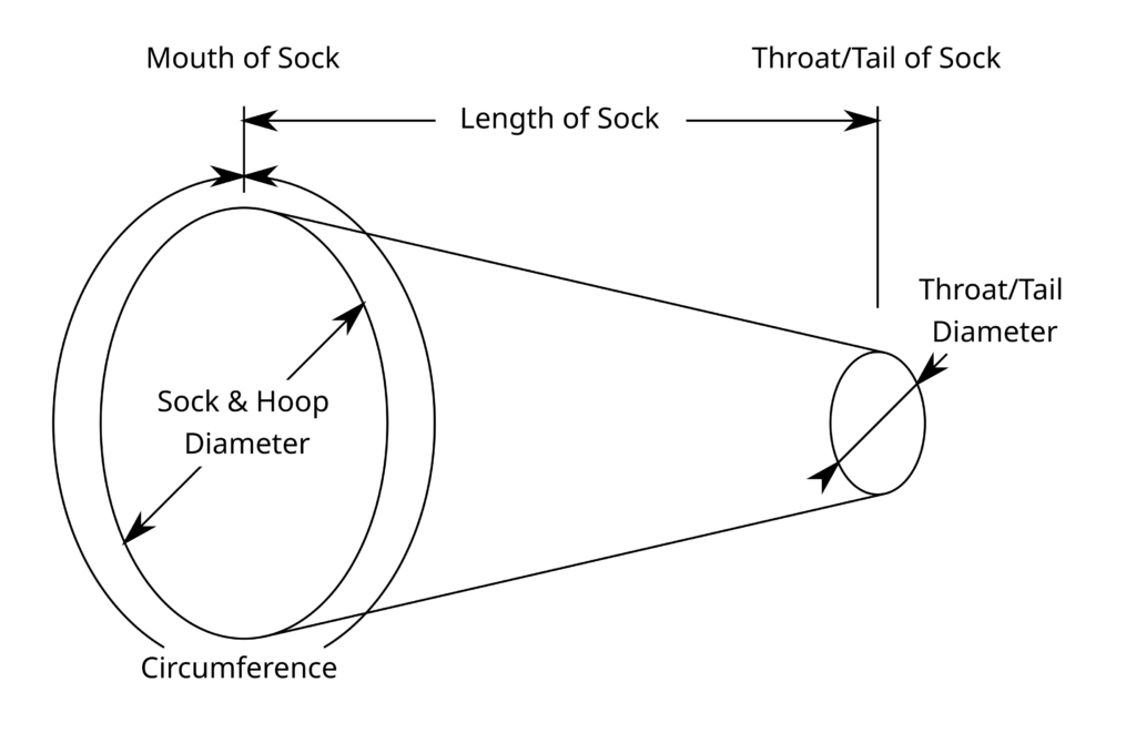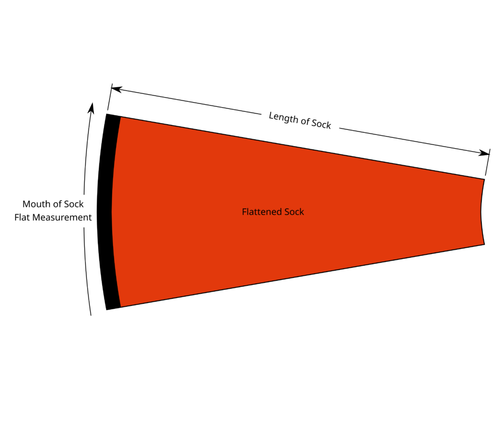 - Sock length is measured along the centerline from the hoop end to the tail seam.